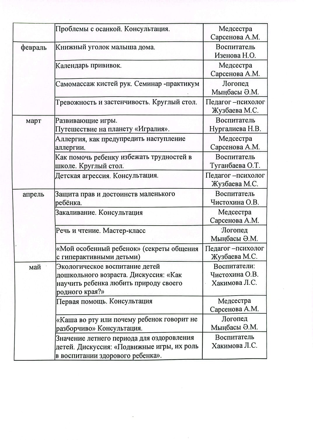 Основное содержание деятельности консультативного пункта