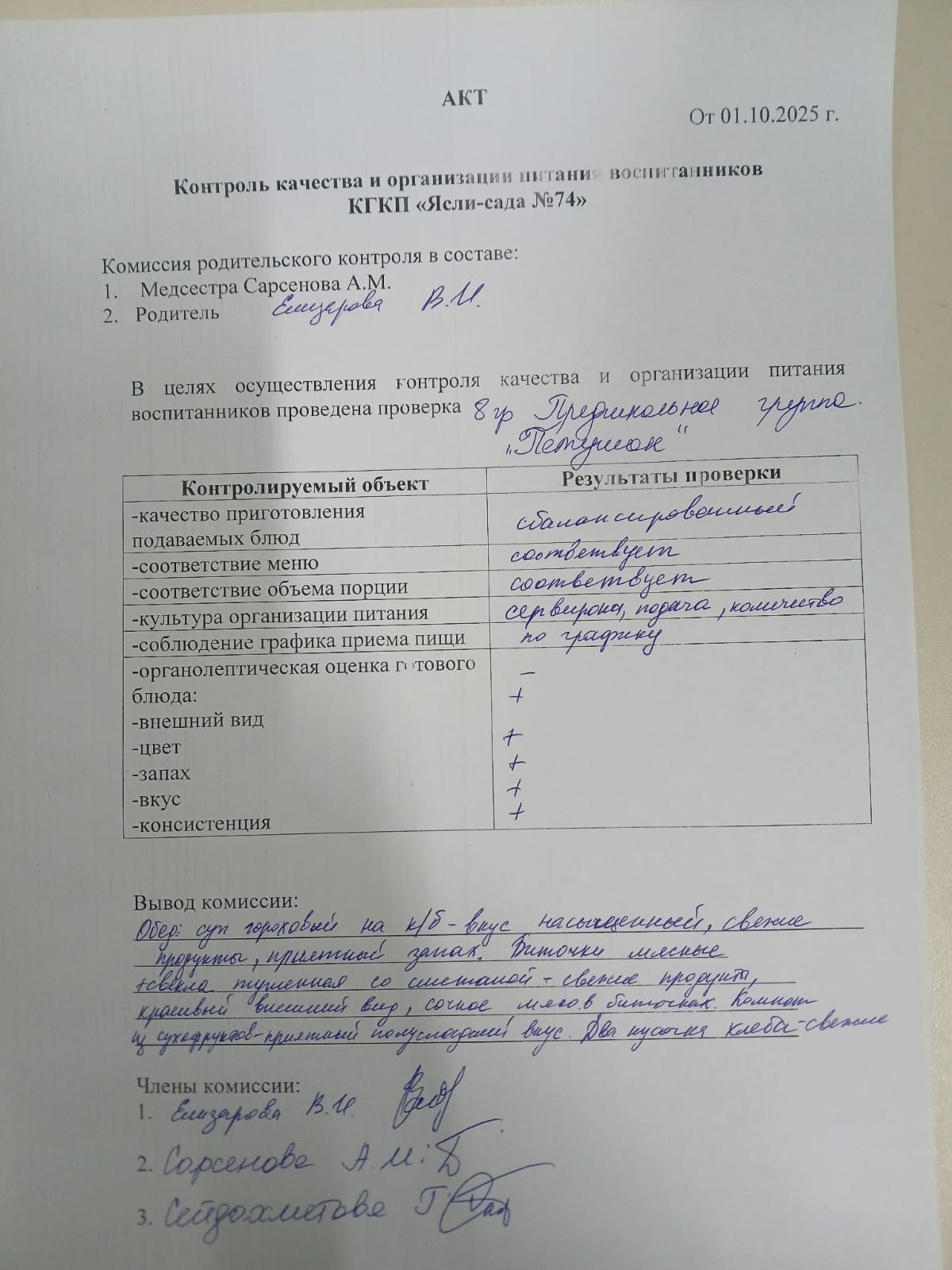 АТА-АНАЛАРДЫҢ ТАМАҚТАНУ САПАСЫН БАҚЫЛАУ АКТ-СІ