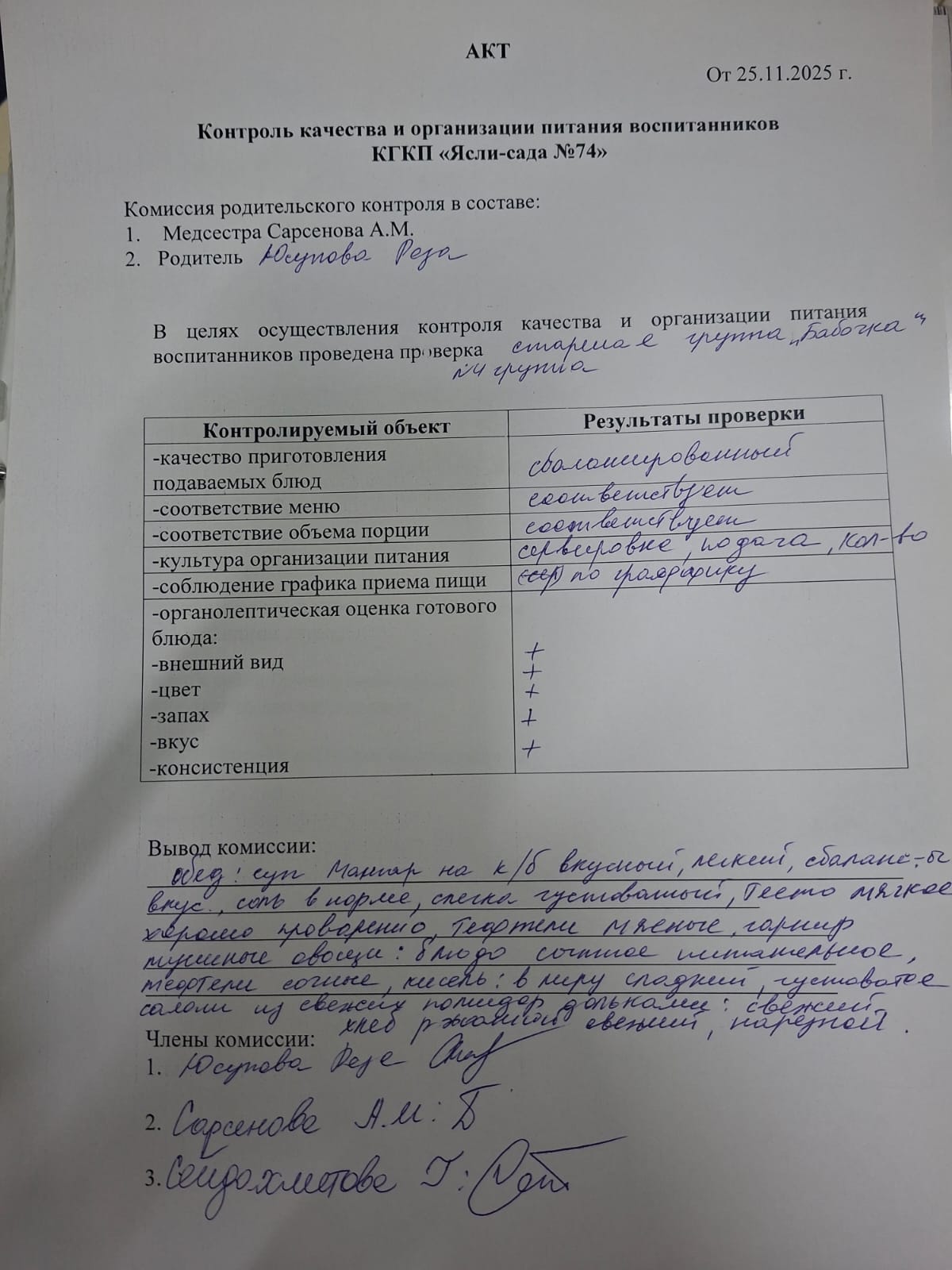 АТА-АНАЛАРДЫҢ ТАМАҚТАНУ САПАСЫН БАҚЫЛАУ АКТ-СІ